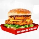 Enjoy the crispy KFC Zinger Tower Burger with spicy chicken, cheese, hash browns, and tangy sauce.